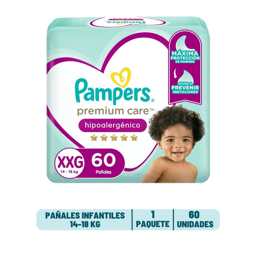 Pañal Pampers Premium Care - 60 y 52 unidades